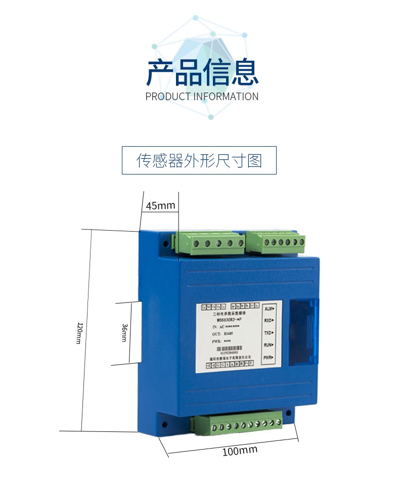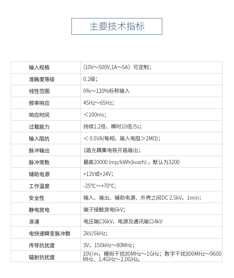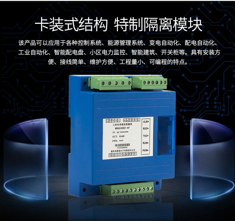 本產(chǎn)品可以監(jiān)測電網(wǎng)的電壓、電流、有無功功率、視在功率、功率因數(shù)、頻率等參數(shù)及錯相、斷相等電網(wǎng)運行狀態(tài);可計量正反向有無功電能、四象限無功電能、時段電能、月度電能;可分析電壓電流2-31次諧波含量及總諧波含量(THD)、電壓電流不平衡度及正序,負序、零序分量、電流K系數(shù)、電壓波峰系數(shù)等;可進行平均相電流、有無功功率、視在功率最大需量統(tǒng)計。使用本產(chǎn)品時須通過RS-485接口并按指定協(xié)議進行通訊,獲取所需的數(shù)字式電參量值。 作為一種先進的智能化、數(shù)字化的電網(wǎng)前端采集元件,該產(chǎn)品可以應用于各種控制系統(tǒng)、能源管理系統(tǒng)、變電自動化、配電自動化、工業(yè)自動化、智能配電盤、小區(qū)電力監(jiān)控、智能建筑、開關(guān)柜等。具有安裝方便、接線簡單、維護方便、工程量小、可編程的特點。
